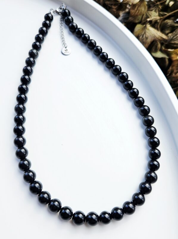 Náhrdelník je vytvorený z hladkých guličiek v veľkosti 8 mm .