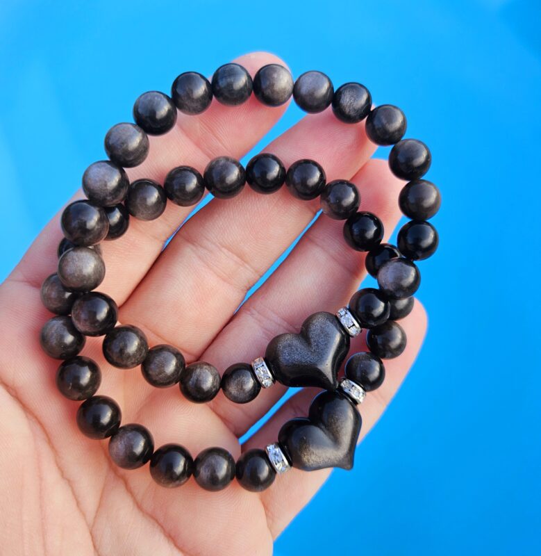 Obsidián strieborný náramok SRDCE 8mm