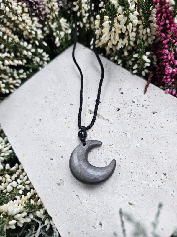 Obsidián strieborný privesok mesiac