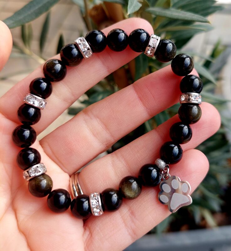Obsidián zlatý náramok 8mm Labka