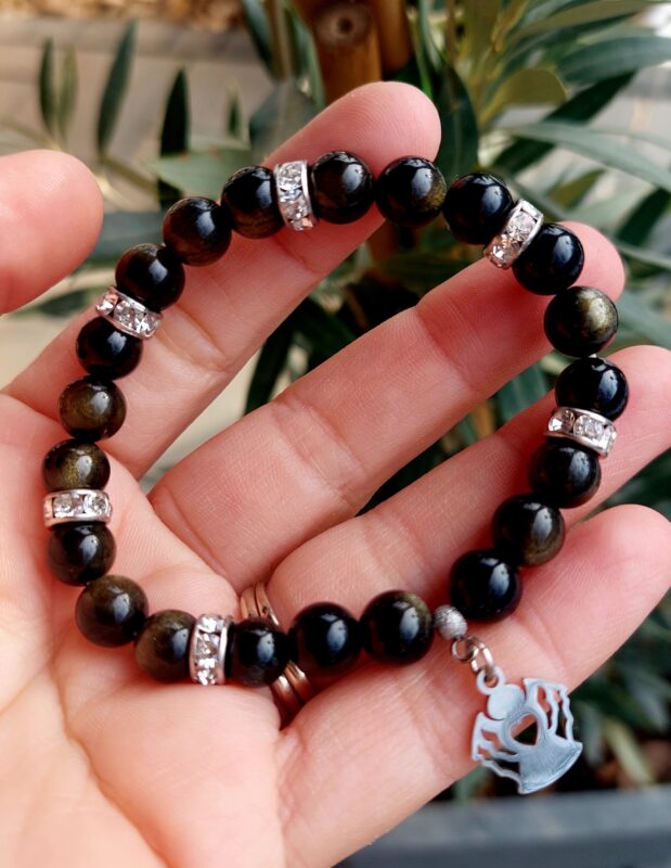 Veľkosť: 17 – 17,5 cm (pre úpravu veľkosti stačí napísať do poznámky) Obsidián zlatý + Krištáľ náramok 8mm Anjelik