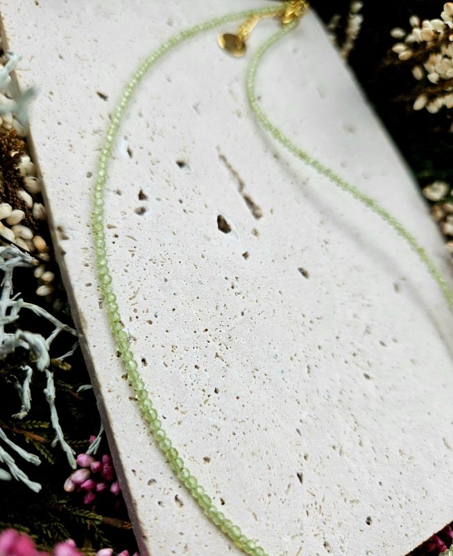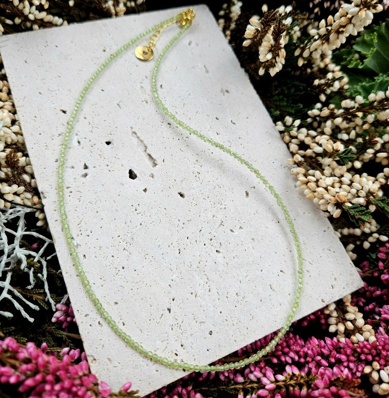Olivín náhrdelník 2mm fazetovaný zlatý