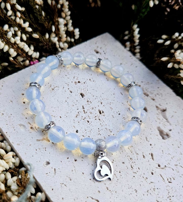 Opalit + Krištáľ náramok 8mm SRDIEČKO