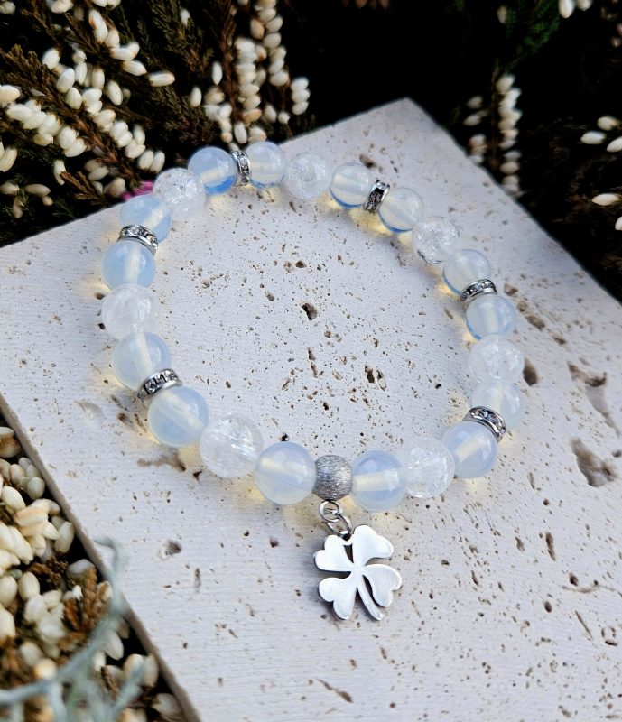 Opalit + Krištáľ náramok 8mm ŠTVORLÍSTOK