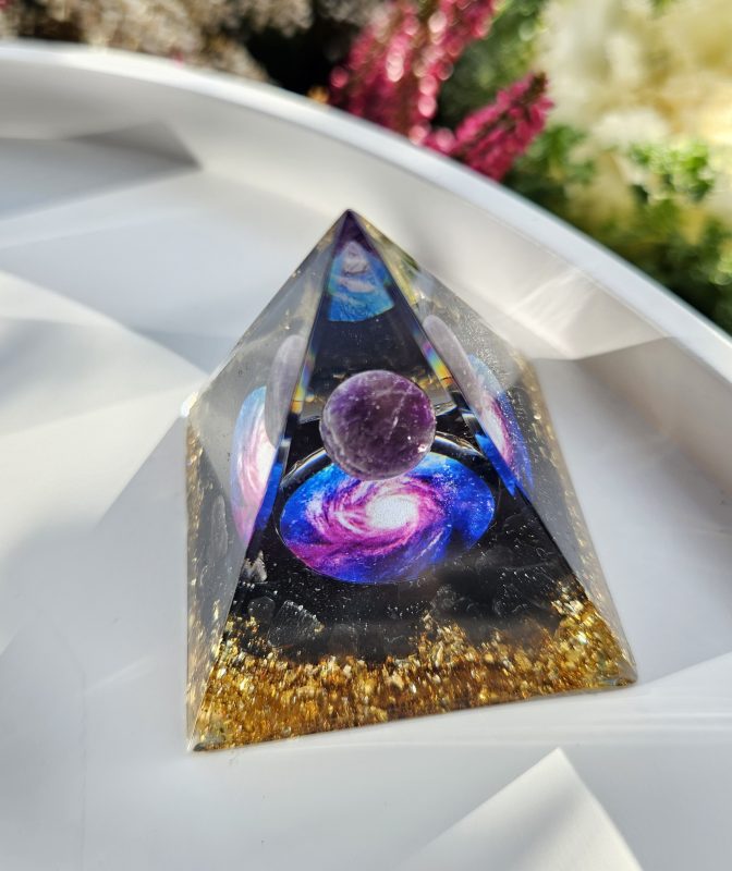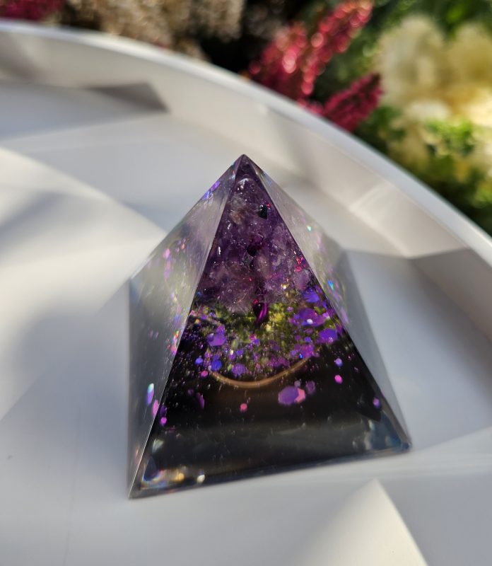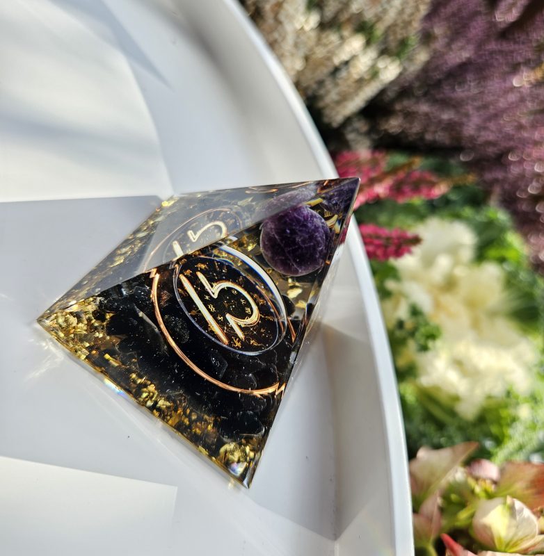 Pyramída Orgonit Turmalín čierny a Ametyst
