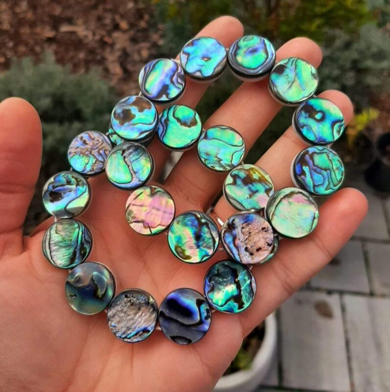 Podmanivé náušnice z pravej Paua mušle očaria svojou jedinečnou hrou farieb, ktorá pripomína hlbiny oceánu. Každý odlesk v sebe nesie tóny tyrkysovej, smaragdovej aj nočnej modrej – prírodné umelecké dielo vytvorené samotným morom.