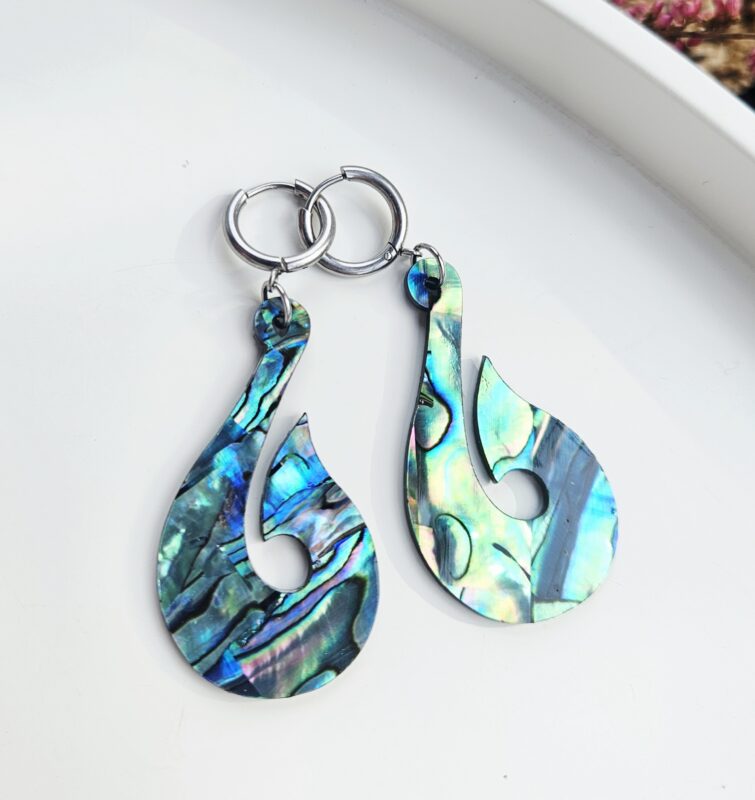 Jedinečné náušnice z pravej Paua mušle očaria svojimi fascinujúcimi odleskami, ktoré pripomínajú pokojnú hladinu oceánu aj jeho tajomné hĺbky. Každý pohyb odhalí nové tóny tyrkysovej, modrej, zelenej a perleťovej žiary – skutočný dar prírody.