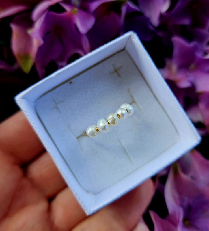 Perly riečne prsteň na gumičke EXKLUZÍVNE zlatý