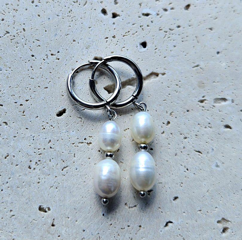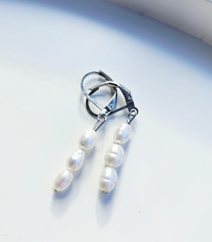 Náušnice z bielych riečnych perál – chirurgická oceľ