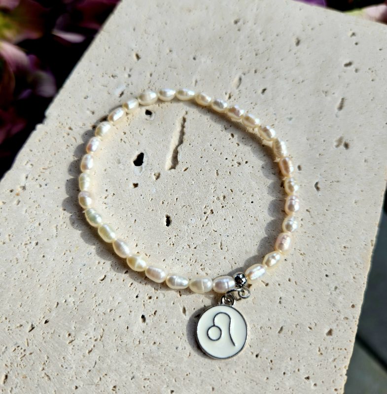 Perly riečne biele náramok 6mm, ZNAMENIE ZVEROKRUHU strieborný