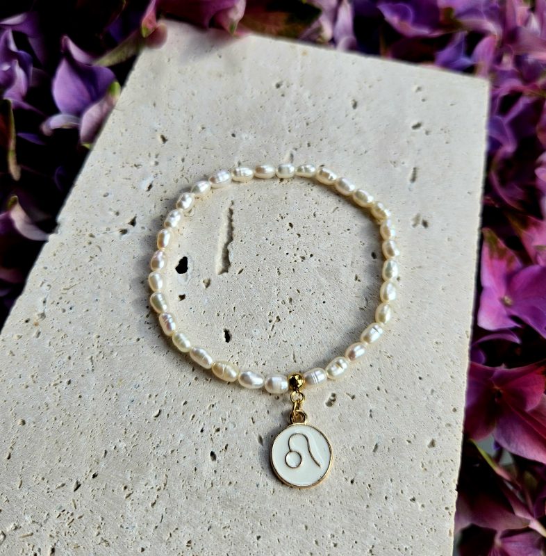 Perly riečne biele náramok 6mm, ZNAMENIE ZVEROKRUHU zlatý