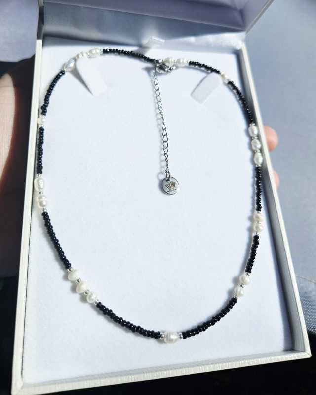 Perly riečne biele náhrdelník strieborno/čierny