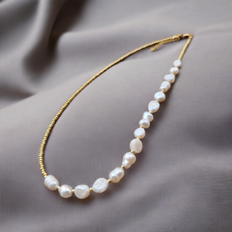 Perly riečne biele náhrdelník zlatý