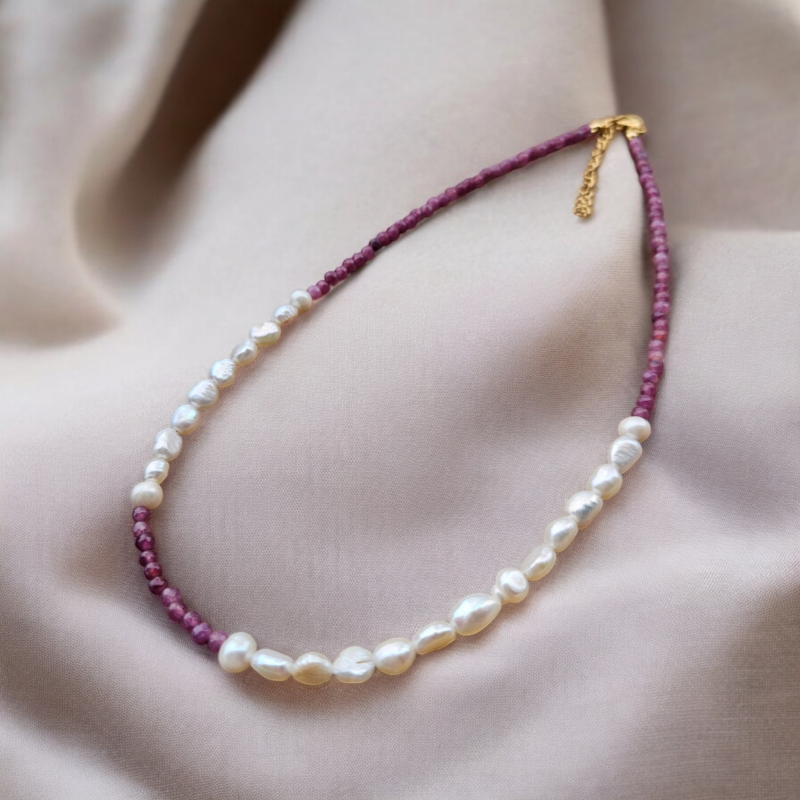 Perly riečne biele + Jadeit fialový náhrdelník
