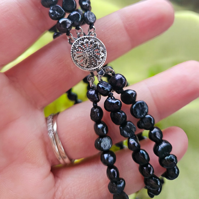 Perly riečne čierne náramok – 3perly , strieborná chir.oceľ