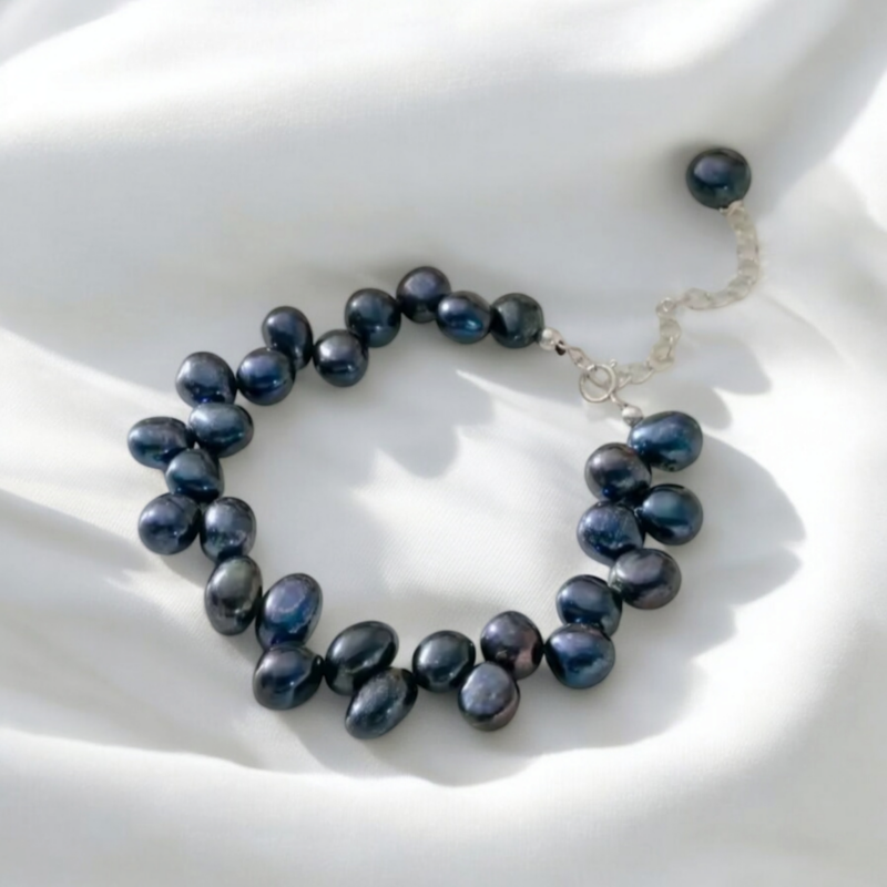 Perly riečne čierne náramok Ag925