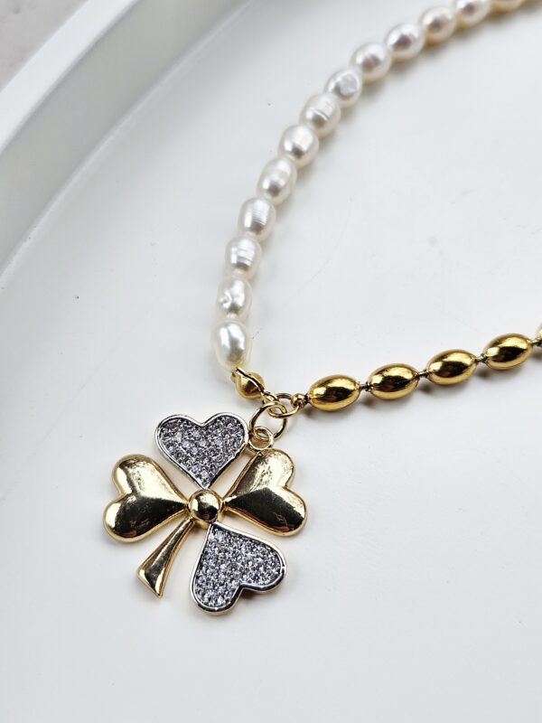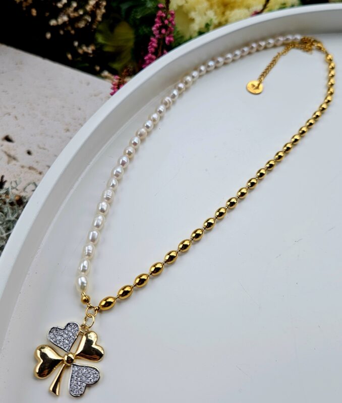 Perly riečne biele náhrdelník zlatý ŠTVORLÍSTOK
