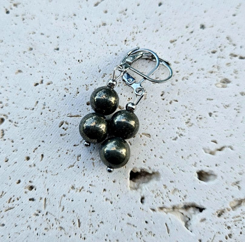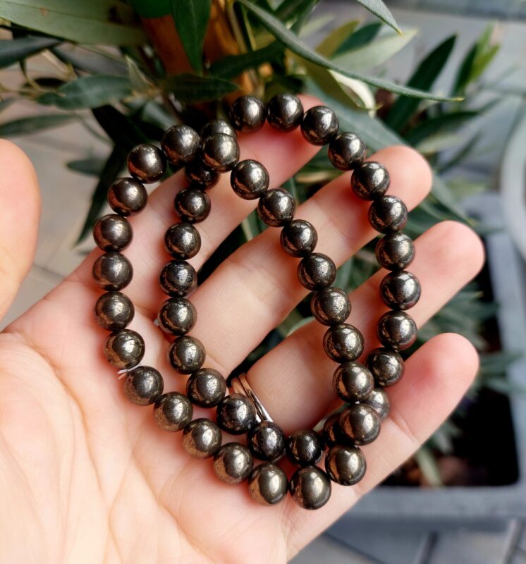 Elegantný náramok z prírodného pyritu s korálkami veľkosti 6 mm je krásnym doplnkom, ktorý v sebe spája jednoduchosť, energiu a jemnú eleganciu. Pyrit je známy ako kameň ochrany, sebavedomia a hojnosti – často sa mu hovorí aj kameň úspechu.