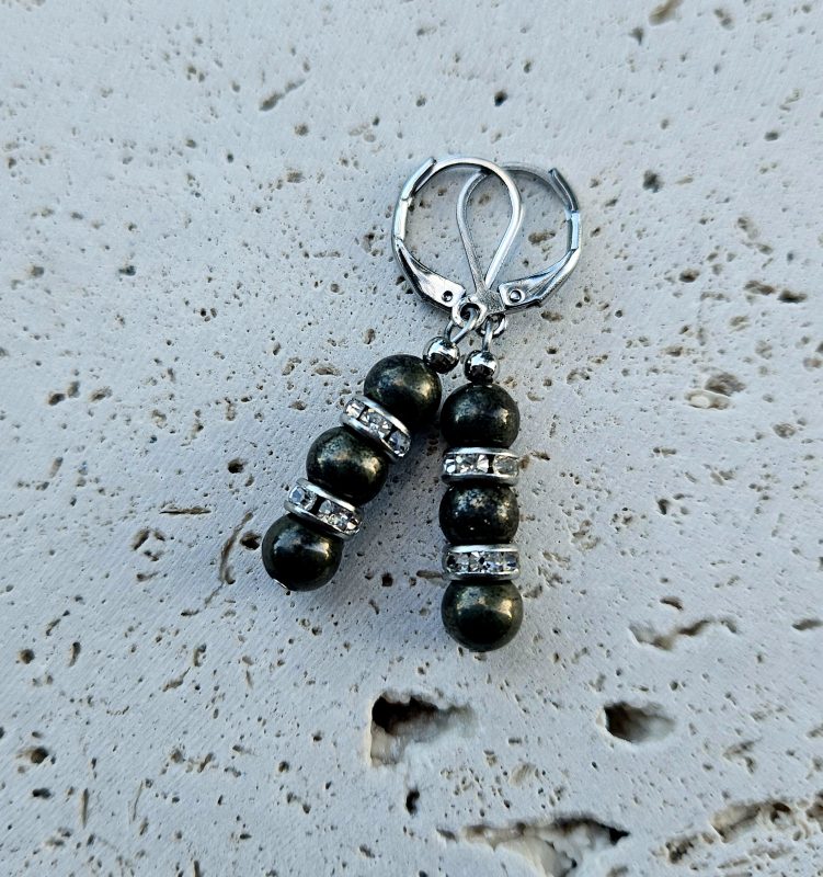 Korálky: 6 mm – pyrit a krištáľ