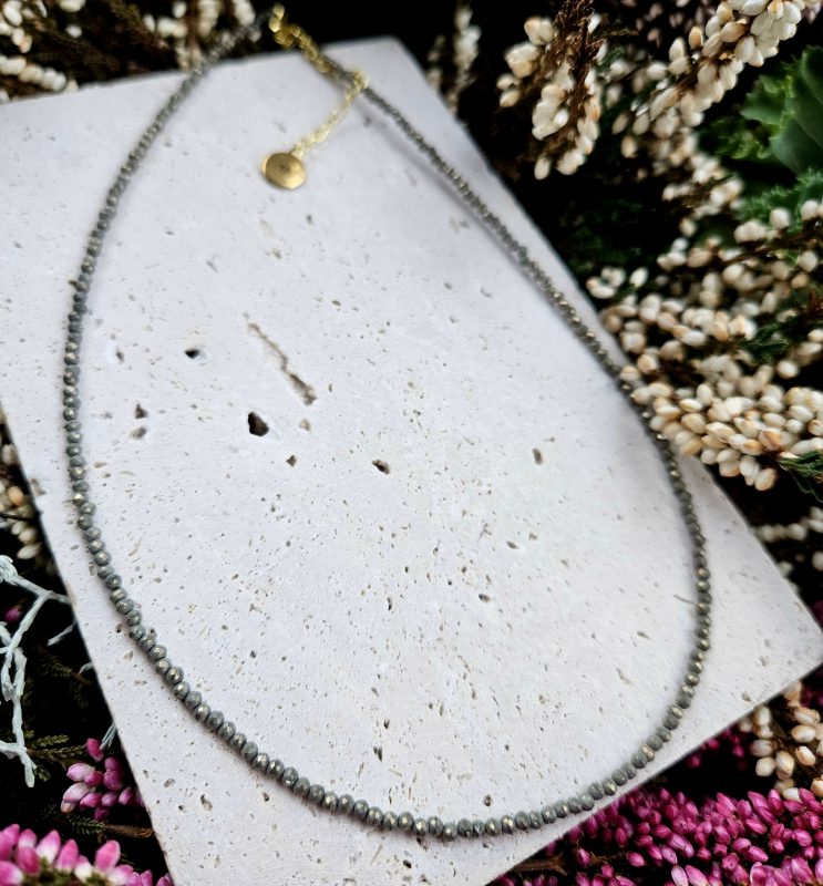 Pyrit náhrdelník 2mm fazetovaný zlatý