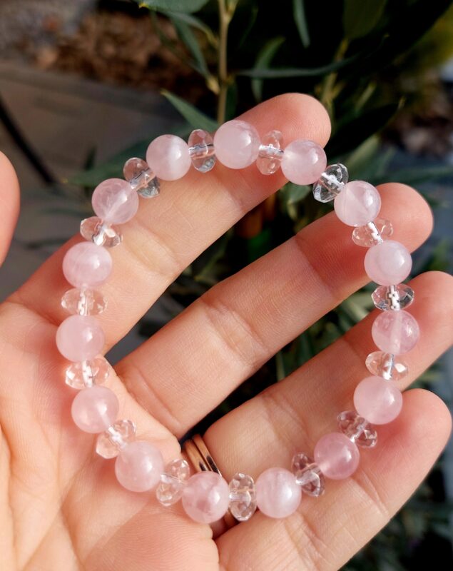 Ruženín + Krištáľ náramok 8mm SRDIEČKO