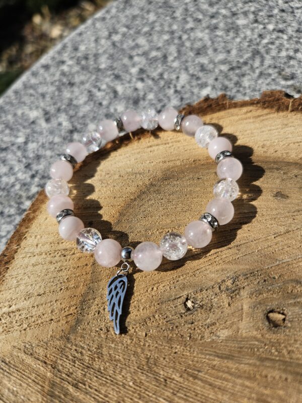 Ruženín + Krištáľ náramok 8mm Anjelské krídlo