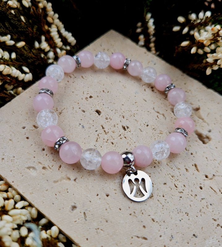 Ruženín + Krištáľ náramok 8mm ANJELSKÉ KRÍDLO