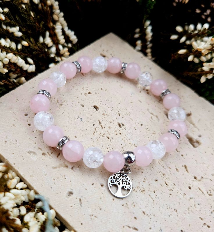 Ruženín + Krištáľ náramok 8mm STROM ŽIVOTA