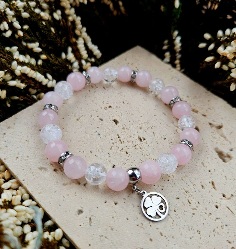 Ruženín + Krištáľ náramok 8mm ŠTVORLÍSTOK