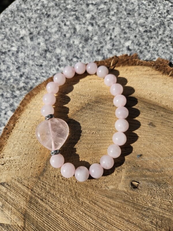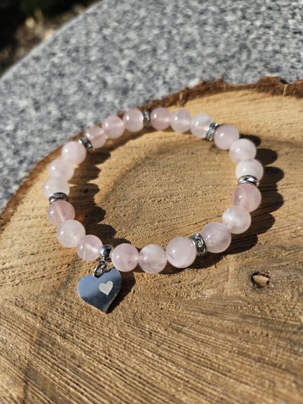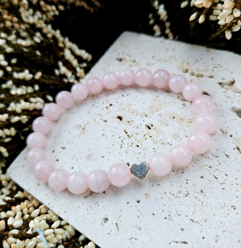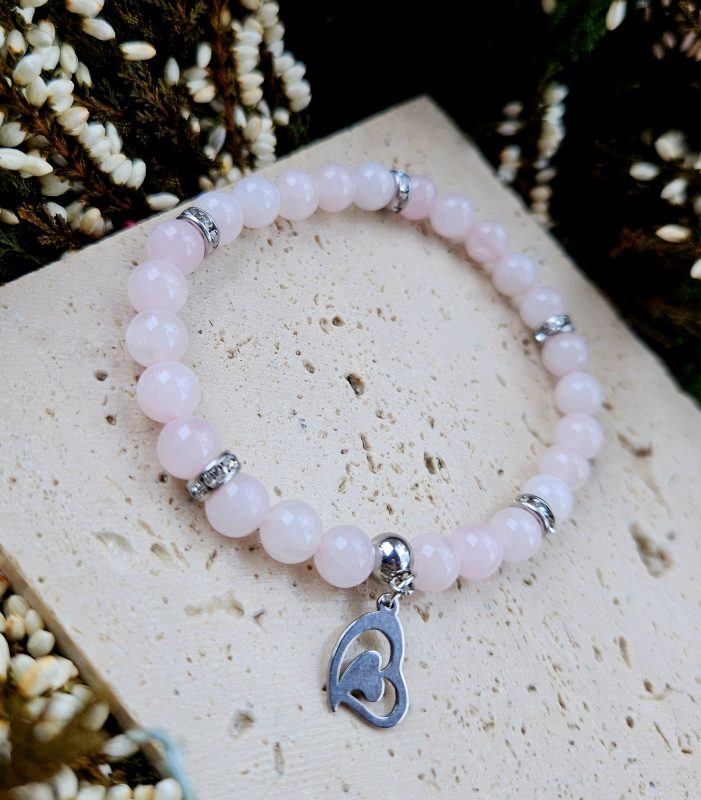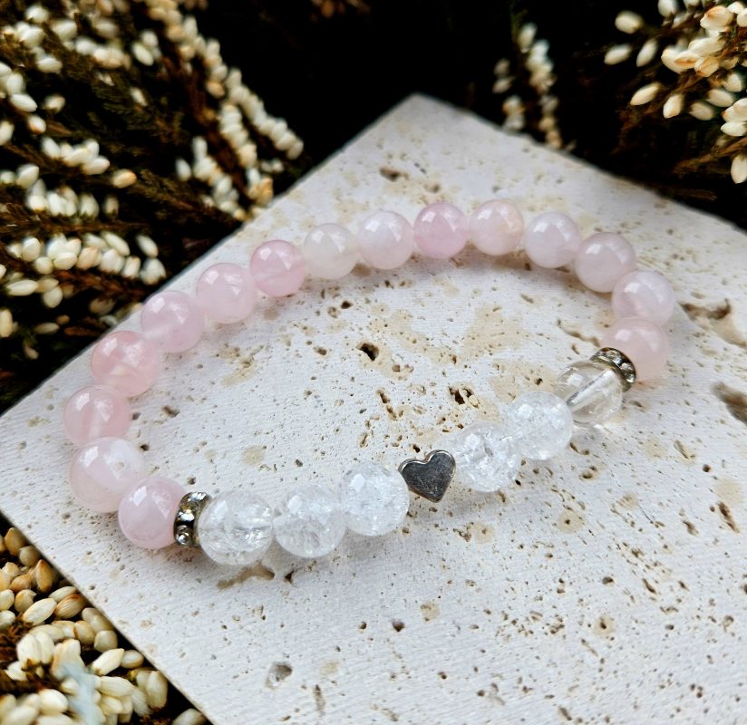 Ruženín + Krištáľ náramok 8mm SRDIEČKO