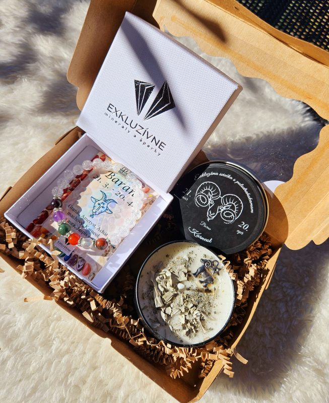 Sviečka + náramok znamenie BARAN v darčekovej krabičke