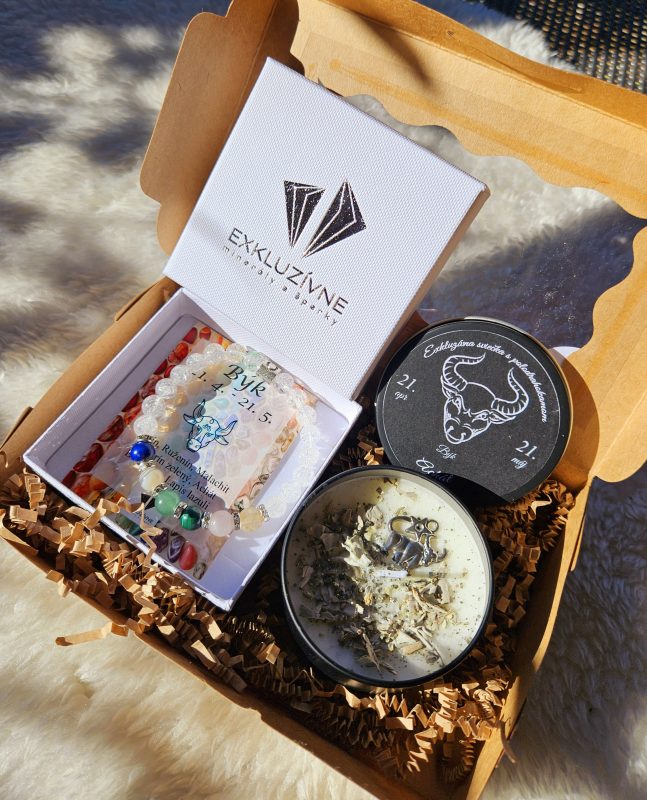 Sviečka + náramok znamenie BÝK v darčekovej krabičke