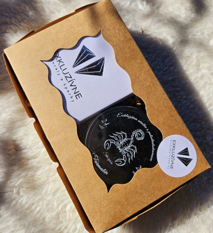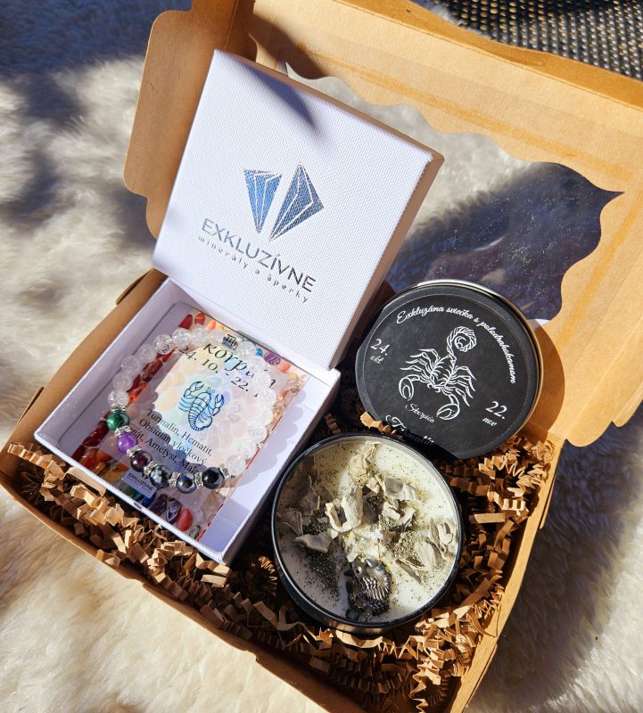 Sviečka + náramok znamenie ŠKORPIÓN v darčekovej krabičke