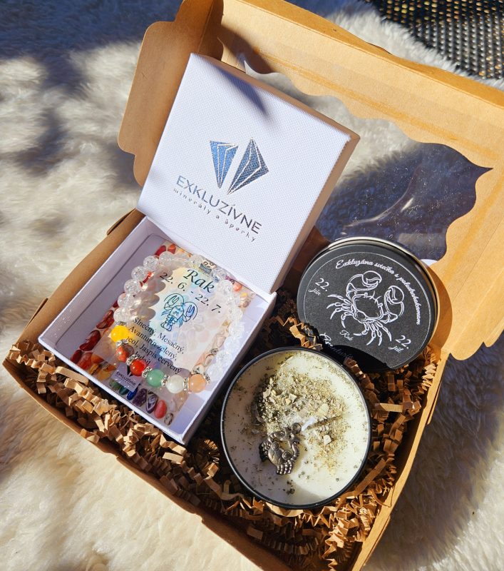 Sviečka + náramok znamenie RAK v darčekovej krabičke