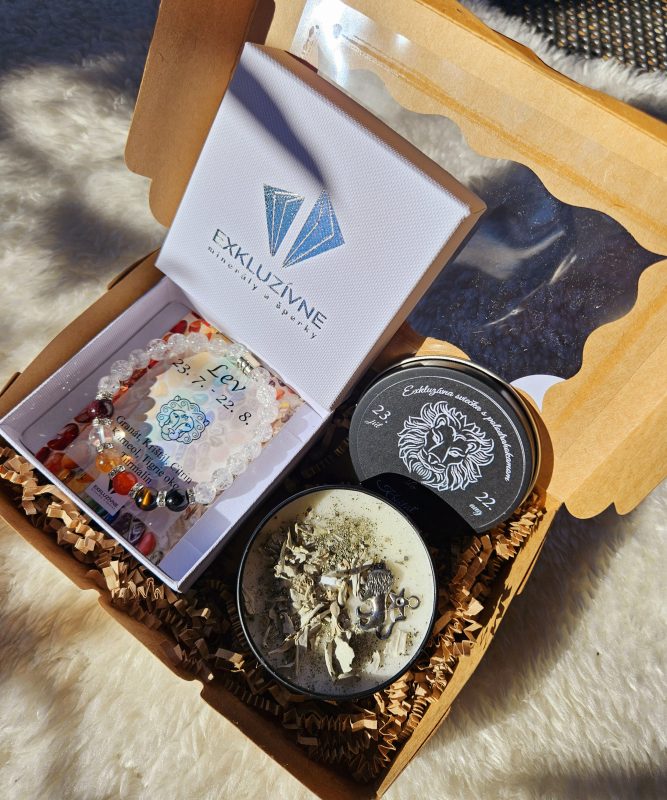 Sviečka + náramok znamenie LEV v darčekovej krabičke