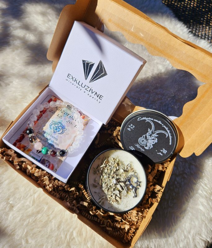 Sviečka + náramok znamenie KOZOROŽEC v darčekovej krabičke