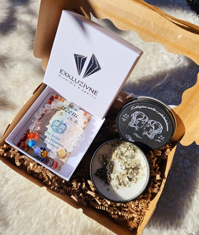 Sviečka + náramok znamenie BLÍŽENCI v darčekovej krabičke