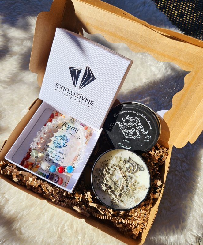 Sviečka + náramok znamenie RYBY v darčekovej krabičke