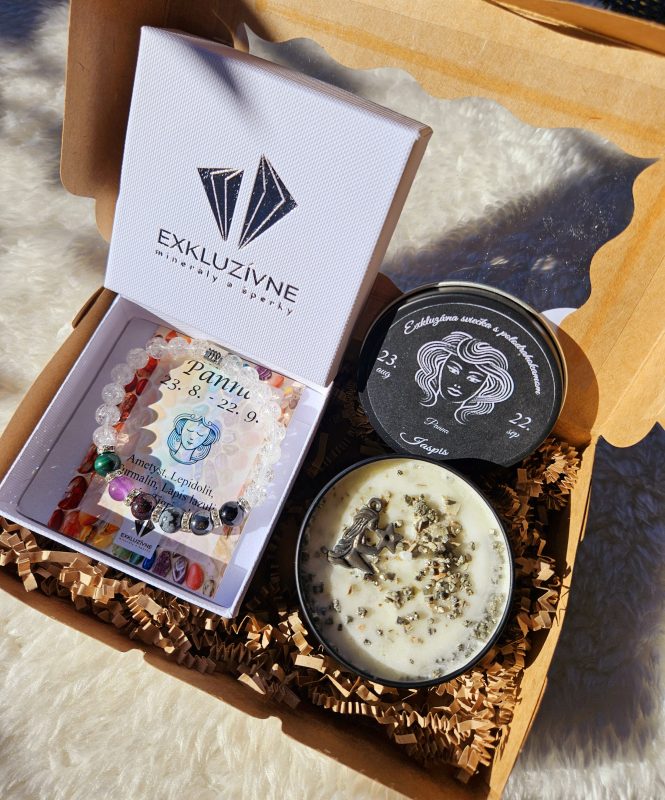Sviečka + náramok znamenie PANNA v darčekovej krabičke