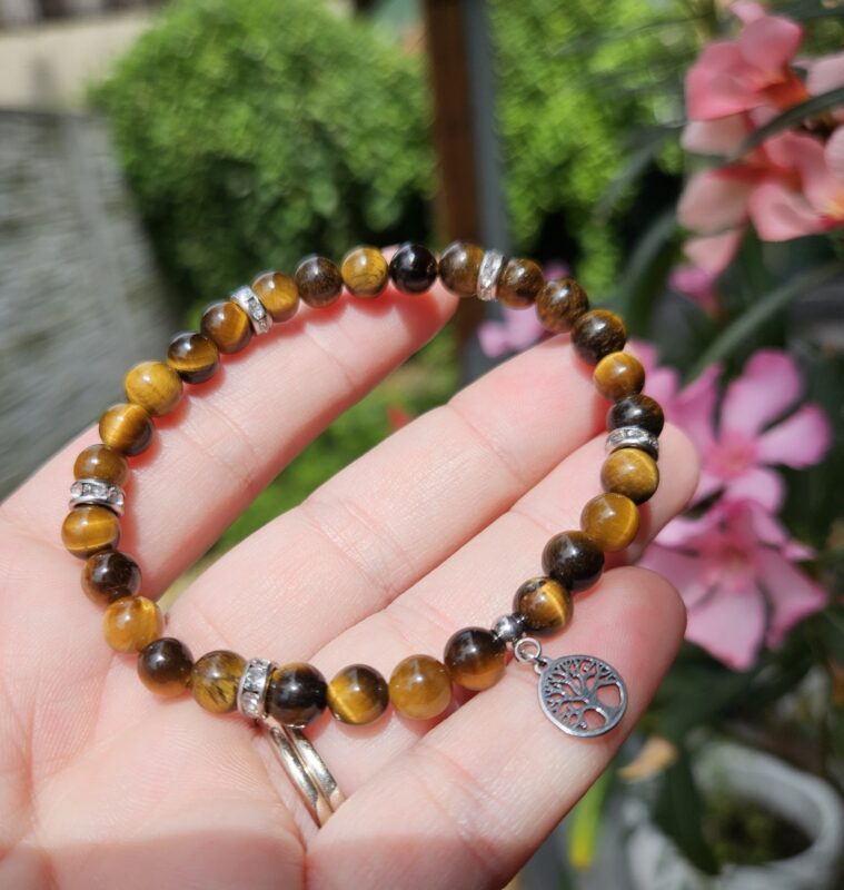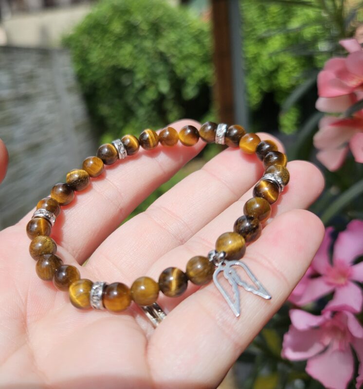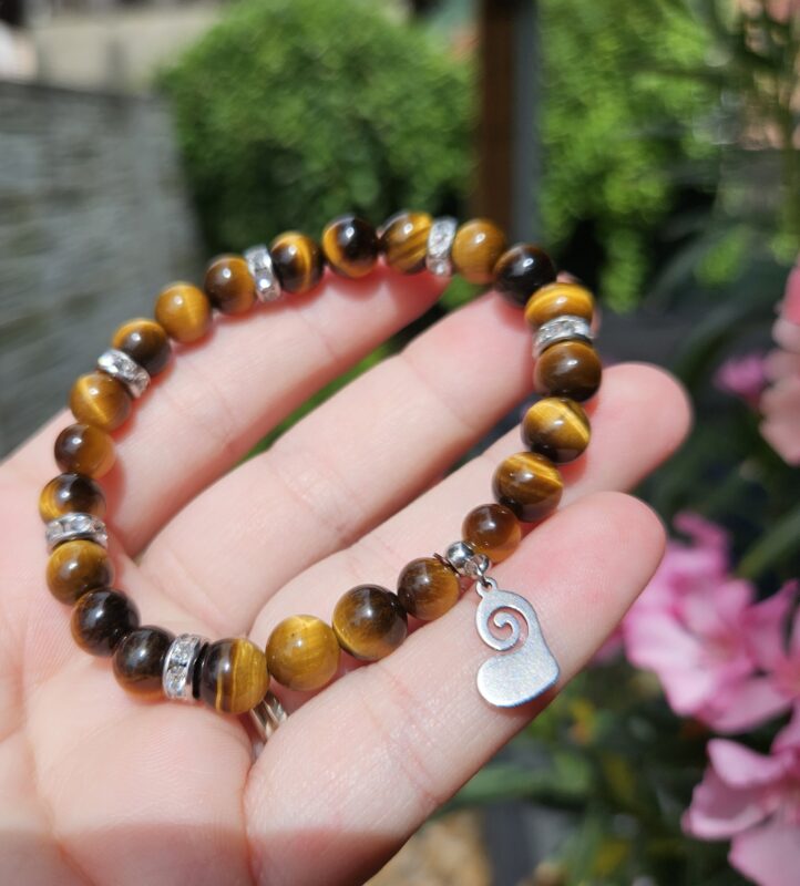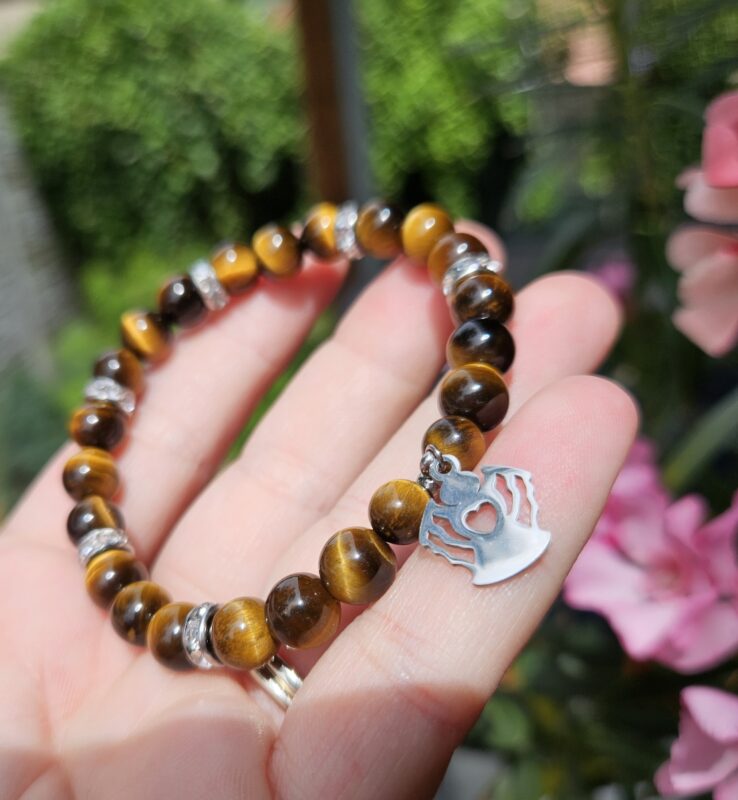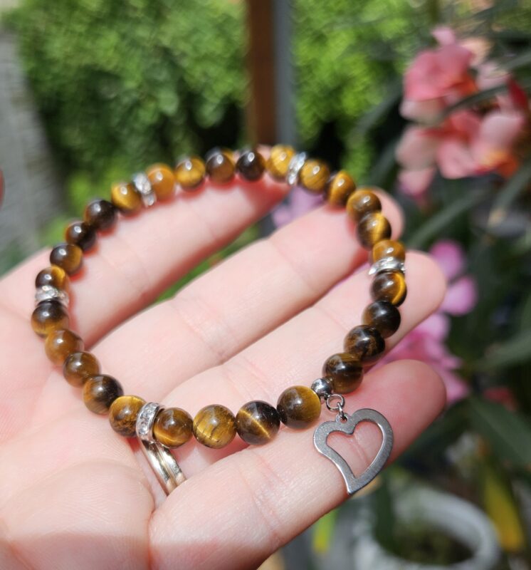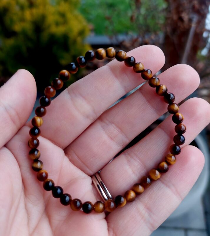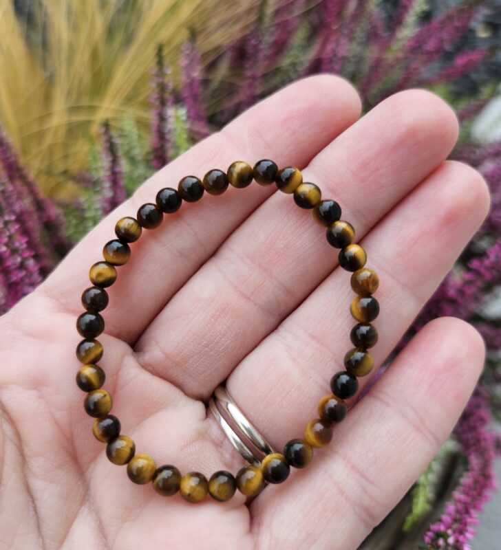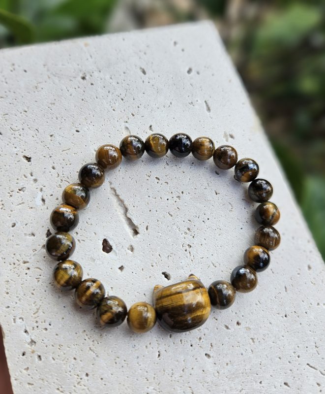 Tento výrazný náramok z tigrieho oka očarí svojím typickým zlatohnedým leskom a fascinujúcim efektom „mačacieho oka“, ktorý sa mení pri dopade svetla.