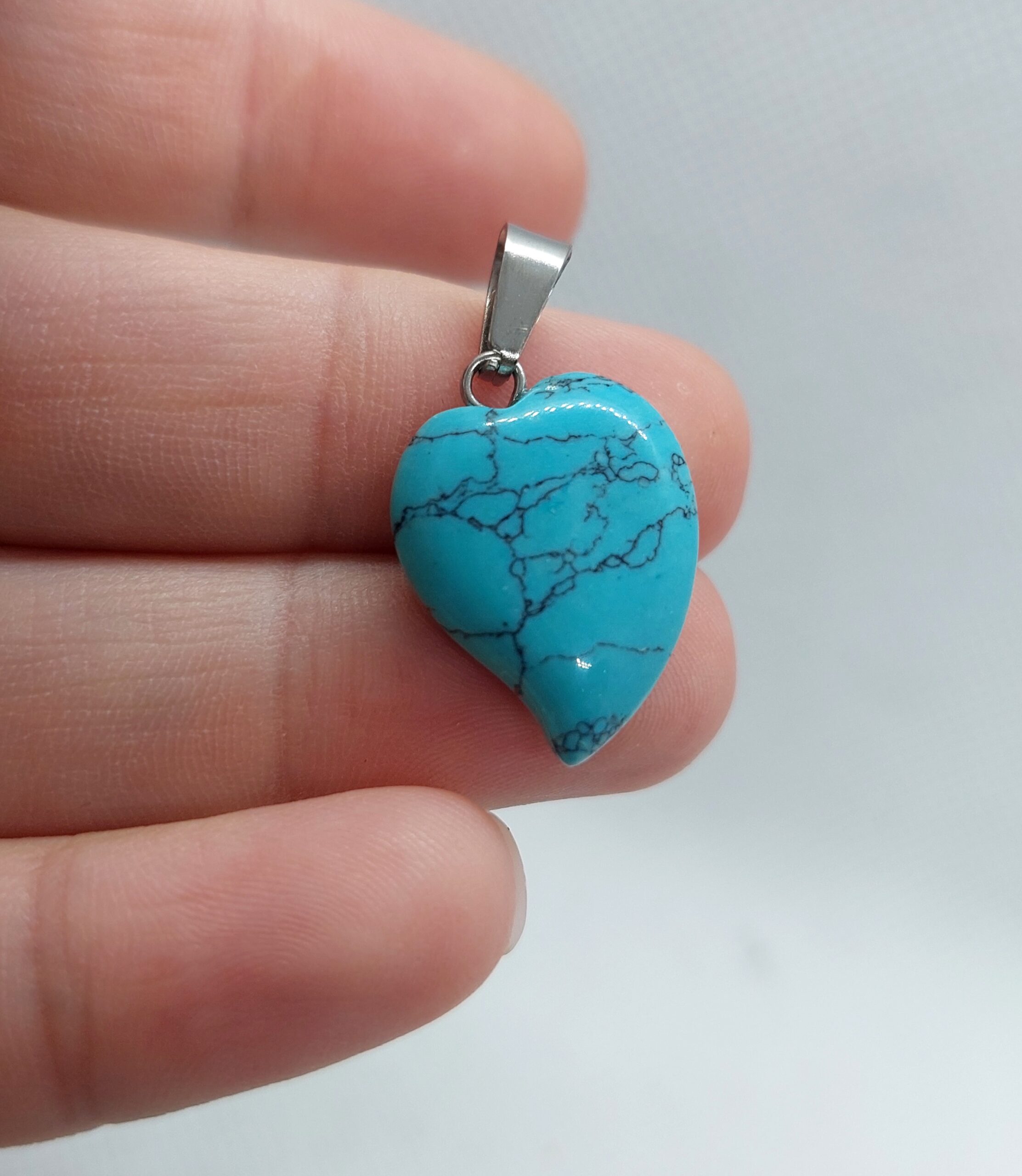 Tyrkenit - prívesok. Tvar -  srdce. Rozmer - 2cm.  Kov -  chirurgická oceľ
