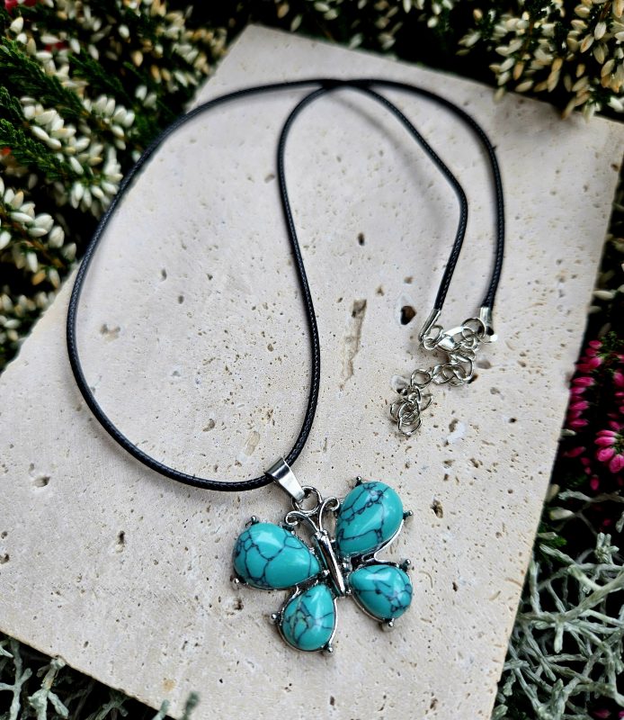 Prívesok Motýľ -TYRKENIT Koženka dostanete ku prívesku ZDARMA Rozmer cca 3x2 cm