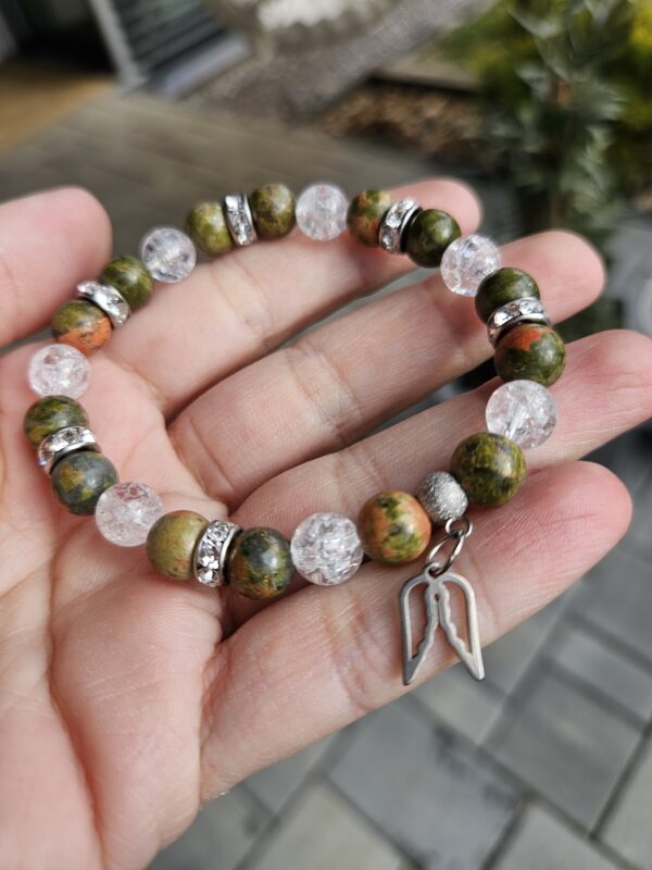 Unakit + Krištáľ náramok 8mm ANJELSKÉ KRÍDLA