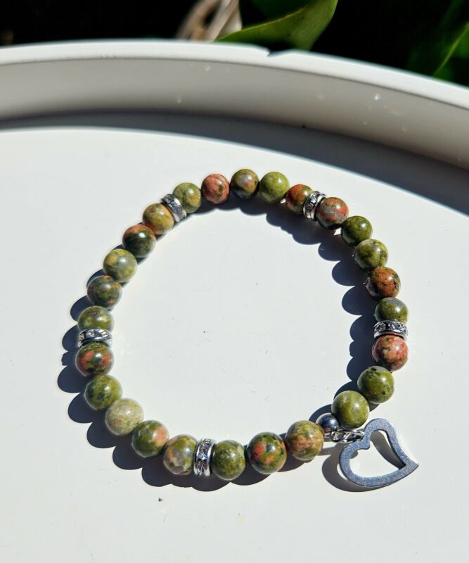 Unakit náramok 6mm SRDIEČKO