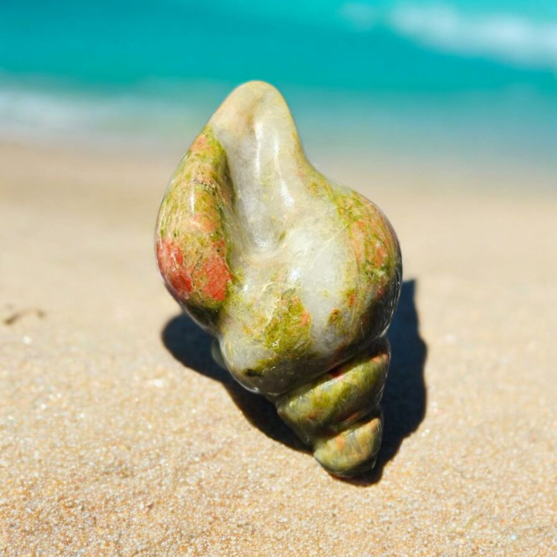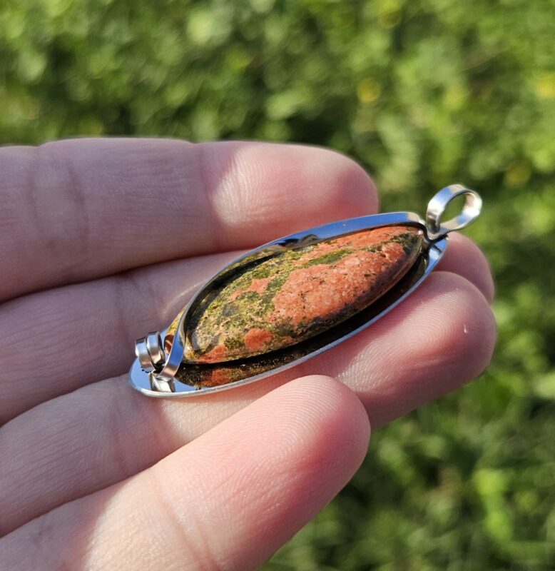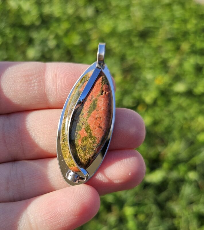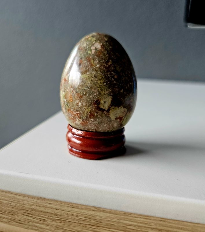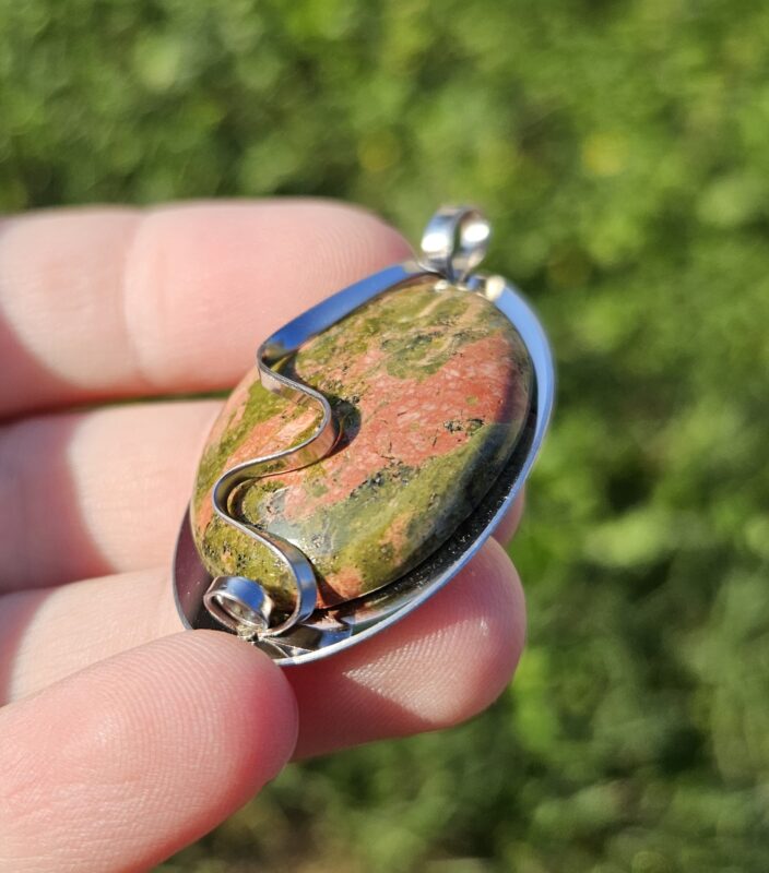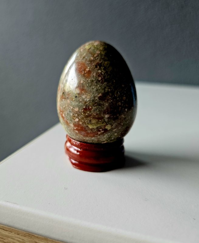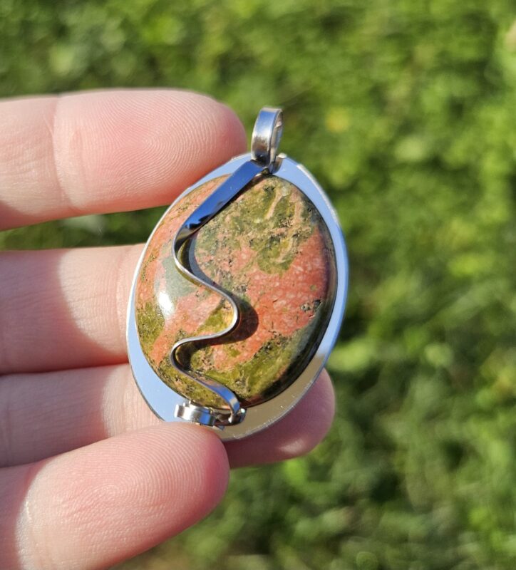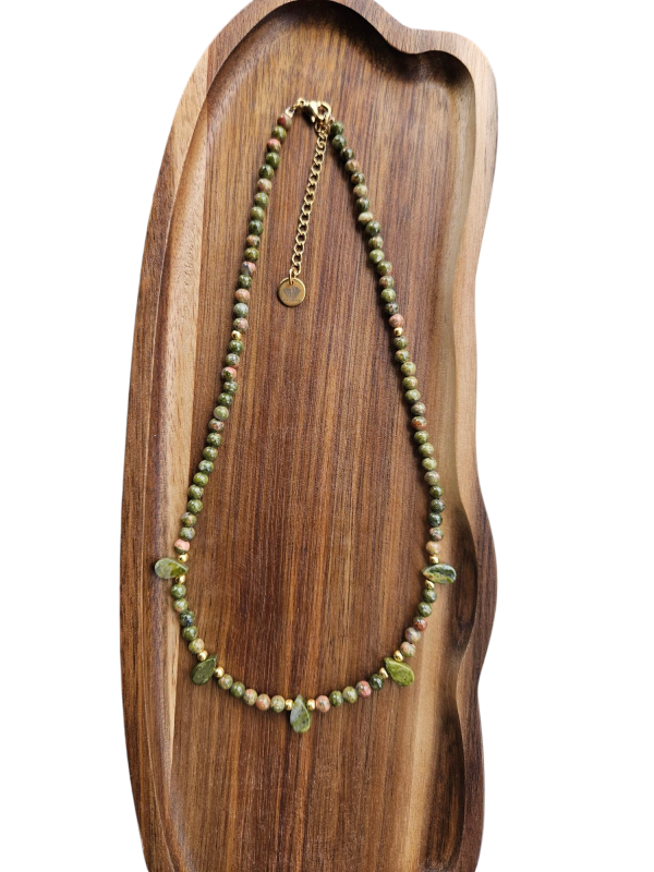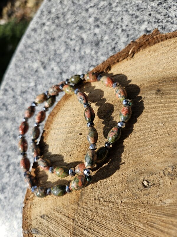 Náramok z prírodného unakitu v jemnej kombinácii zelených a tehlovo-červených odtieňov, ktorý pôsobí harmonicky a elegantne. Každá guľôčka je originál, vďaka čomu je každý kus jedinečný.
