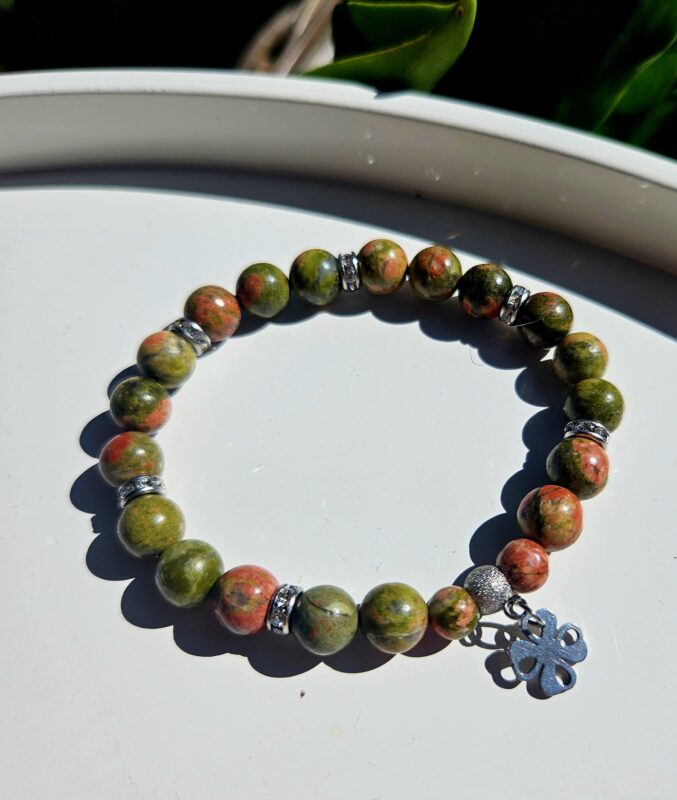 Unakit náramok 8mm ŠTVORLÍSTOK